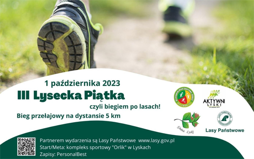 Zaprzyjaźniona grupa biegowa Aktywni Lyski zaprasza nas na 5-kilometrowy bieg przełajowy w pięknych okolicznościach przyrody Cysterskiego Parku Krajobrazowego. Zapisy i regulamin biegu znajdziecie TUTAJ.
